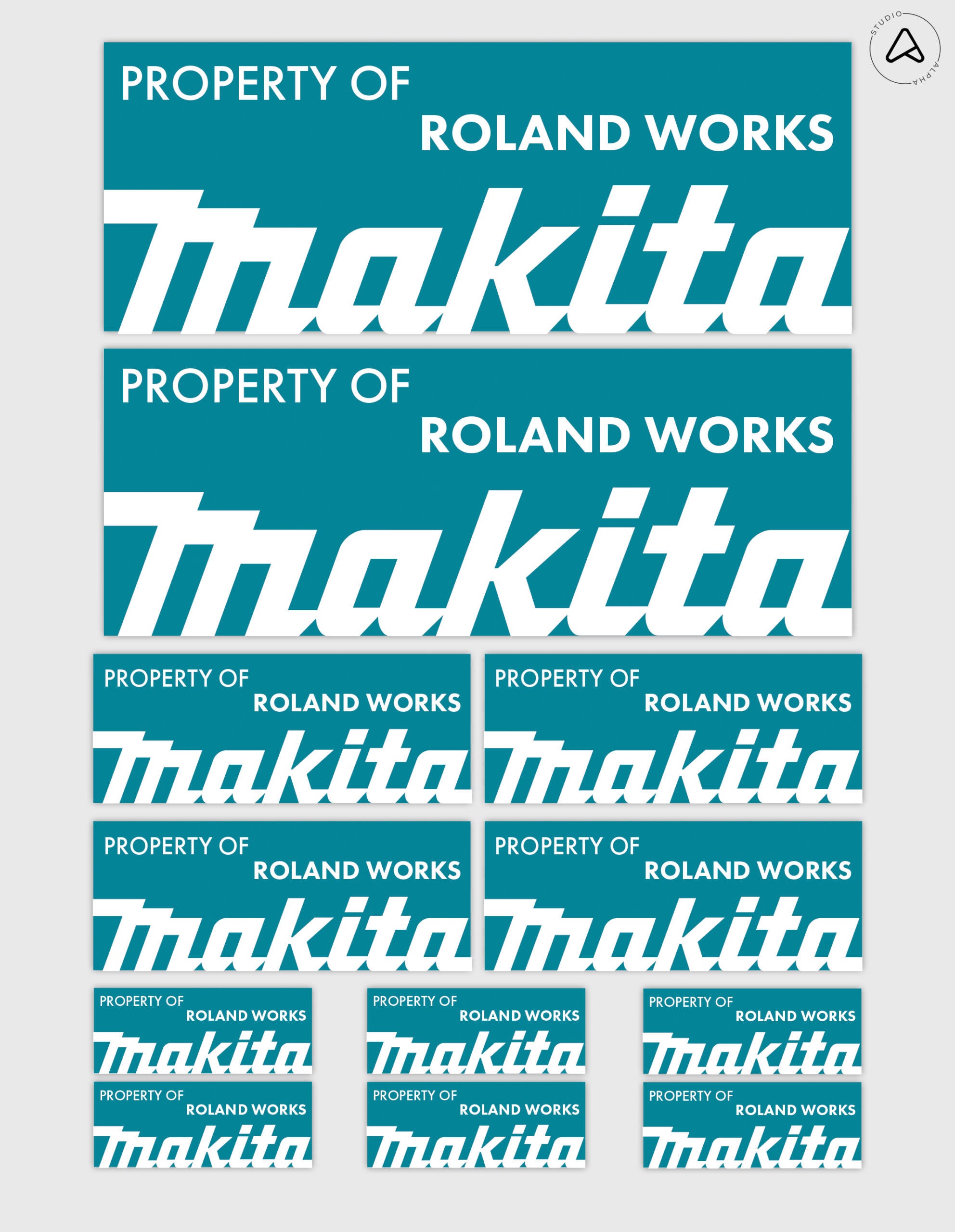 12x Gepersonaliseerde "Property Of" Makita Gereedschap Stickers | 3 Maten | Gelamineerd