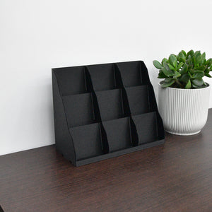 Deze stijlvolle houder heeft 9 vakken en biedt plaats aan ongeveer 50 kaarten per set – ideaal voor Pokémon, Lorcana, MTG, One Piece TCG en andere verzamelkaarten.